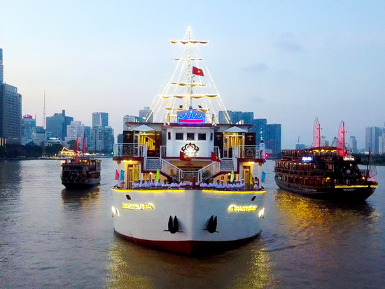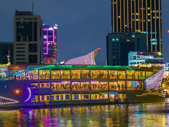きらびやかな船に乗り込んで、サイゴン川のディナークルーズへ。船内のイベントや夜景、お食事をお楽しみください。