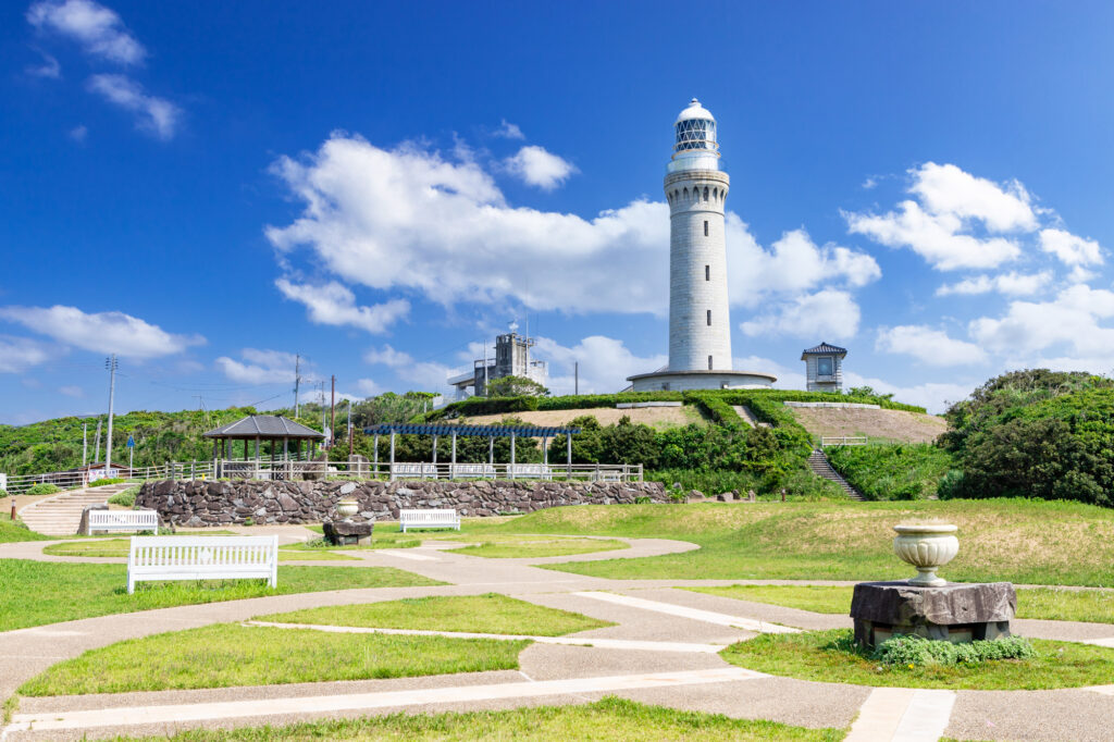 午前: 白亜の灯台がたたずむ憩いの場/角島灯台公園