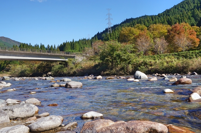 板取川は、その澄んだ水と美しい景観で知られています。特に11月には、周囲の紅葉が川面に映り込み、幻想的な風景が広がります。川遊びや釣りを楽しむことができ、自然の中でリフレッシュするには最適な場所です。