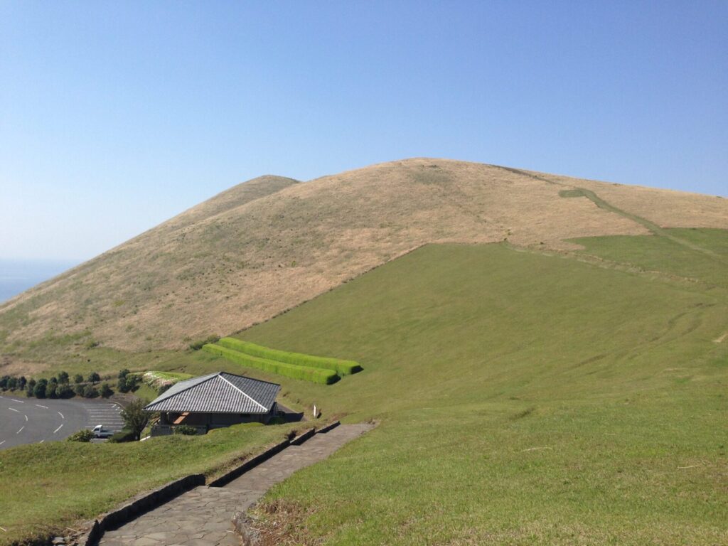 鬼岳の麓には、かつての火山活動を物語るバームクーヘンのような地層が見られます。緩やかな斜面を登ると臼状の火口が広がり、季節の花が咲く尾根は散策に最適です。12月には冬の花々が咲き誇り、訪れる人々を楽しませてくれます。
