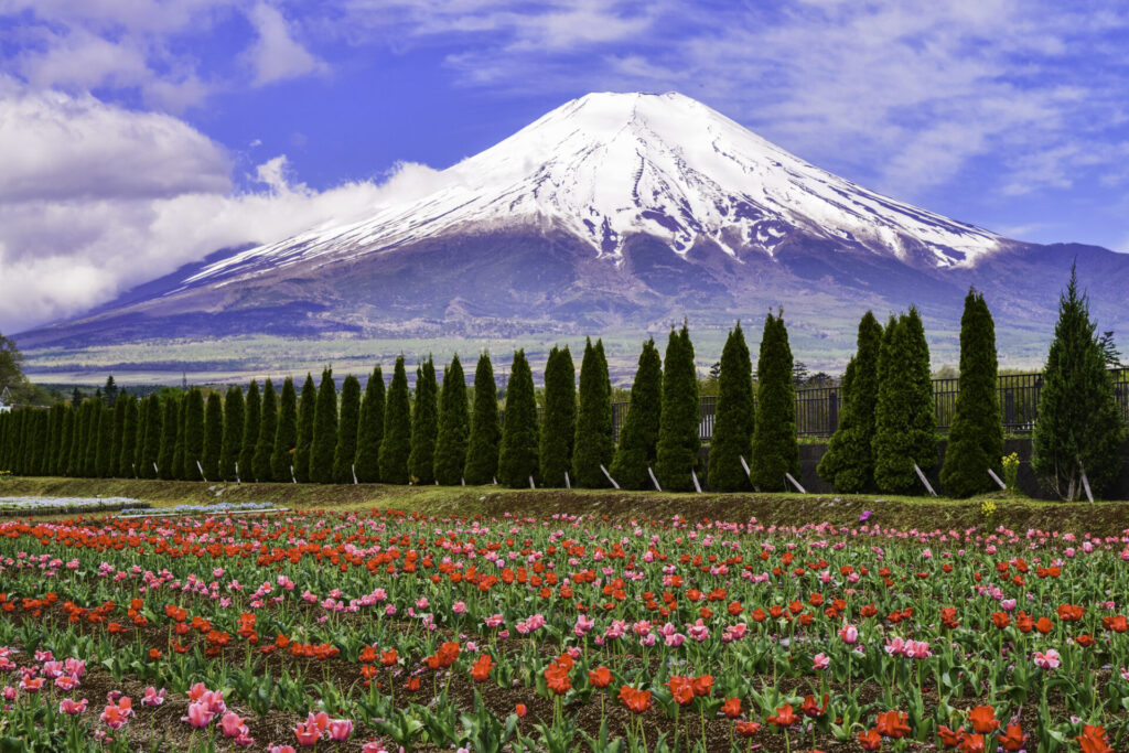 「山中湖花の都公園」は、四季折々の花々が咲き誇る美しい公園です。特に冬の時期には、イルミネーションが公園を彩り、幻想的な雰囲気を楽しむことができます。富士山を背景にした風景は、写真映えも抜群ですよ!