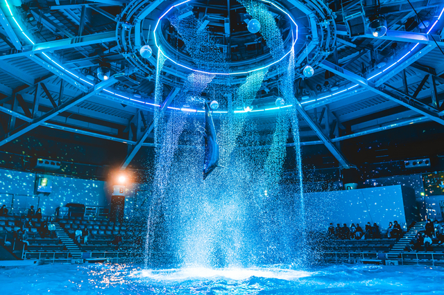 品川駅からほんの5分ほど歩いたところに位置する「マクセル アクアパーク品川」は、最先端のデジタル技術を駆使した水族館です。プロジェクションマッピングと融合した非現実的な空間は、訪れる人々を魅了し、ドルフィンパフォーマンスは感動的なほど美しいです。また、夜の部の瑠璃花火のショーは、音と映像、イルカたちのパフォーマンスが一体となり、煌びやかな世界を創り出します。ショーとショーの間の時間も、イルカたちが練習している風景をゆっくりと眺めながら癒やれること間違いなし。