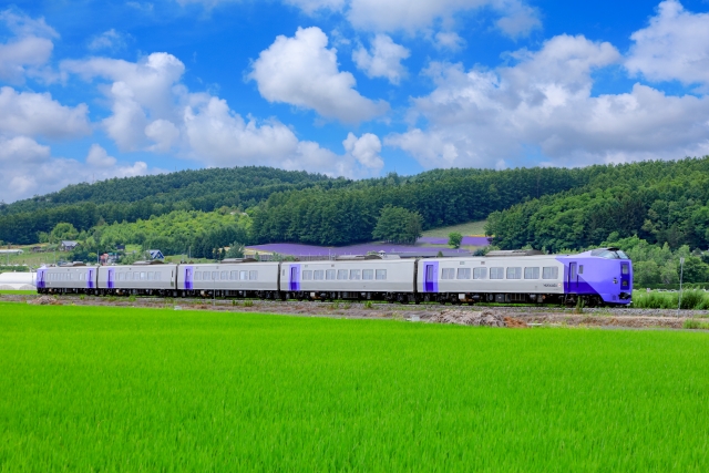 札幌から富良野へは、夏~秋限定の特急フラノラベンダーエクスプレスを利用すると便利です。夏の観光シーズンには、ラベンダー畑を眺めながら快適な旅を楽しめますよ。