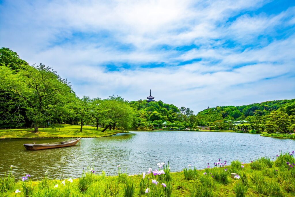 横浜にある「三溪園」は、明治時代の実業家、原三溪によって造られた日本庭園です。庭園内には、季節ごとに変わる自然の美しさや、古き良き日本の建築を見ることができます。特に、春には桜が、秋には紅葉が園内を彩ります。