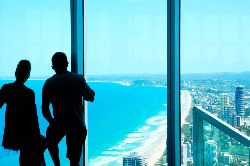 Q1ビルにあるスカイポイント展望台は、ゴールドコーストの美しい景色を一望できる絶好のスポットです。展望台へのアクセスは、エレベーターを利用します。エレベーター内部にはモニターが設置されており、上昇している様子を楽しむことができます。