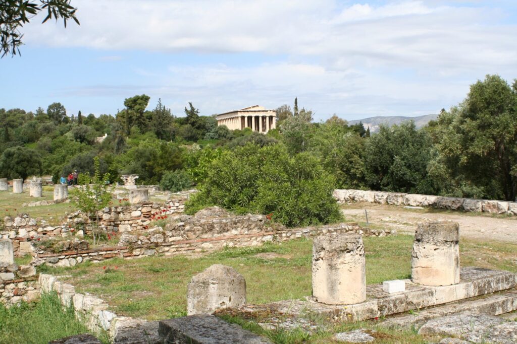 古代アゴラには、様々な歴史的建造物が残っています。特に、ヘパイストス神殿は、古代アゴラで最も保存状態が良い建造物の一つで、その壮大な姿を今に伝えています。また、アゴラ考古学博物館では、古代アゴラで発掘された多くの遺物が展示されており、古代ギリシャの生活を垣間見ることができます。