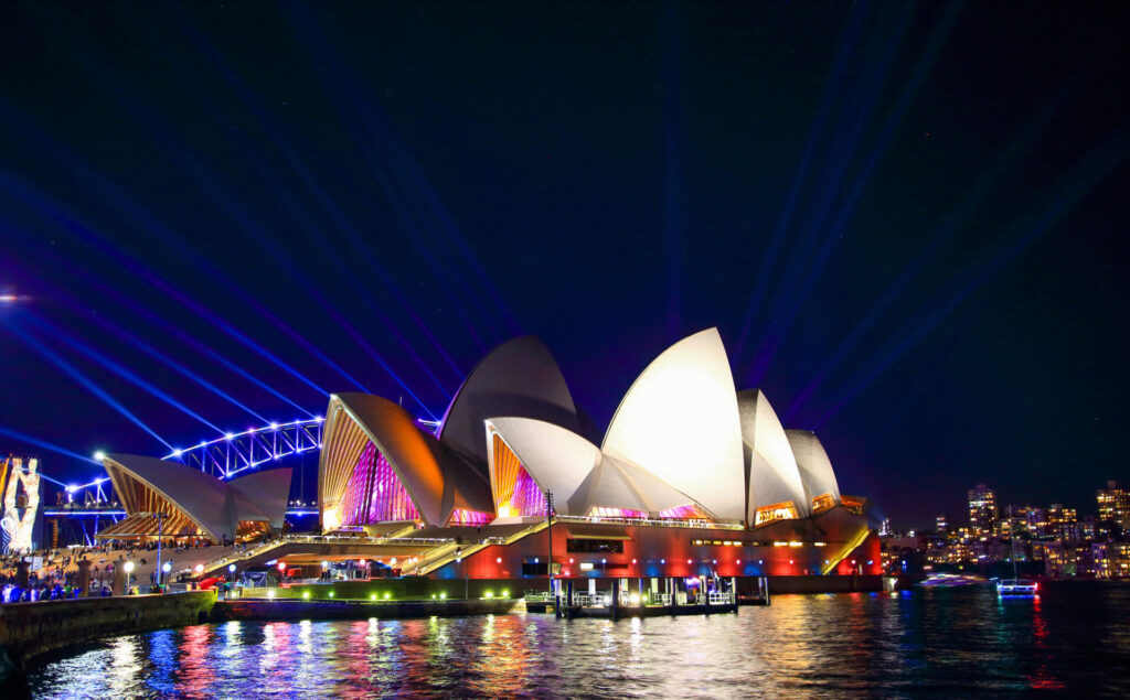 ビビッド・シドニーは、毎年5月下旬から6月にかけて開催される光と音の祭典です。シドニーの街全体がカラフルなライトアップで彩られ、幻想的な雰囲気に包まれます。特にオペラハウスやハーバーブリッジのライトアップは圧巻です!