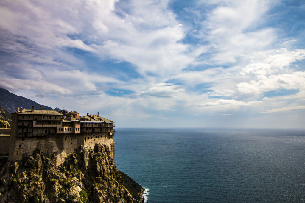 ギリシャにあるアトス山は、正教会の聖地として知られています。その歴史は長く、修道士たちが1000年以上もの間、この地を守り続けてきました。崖の上に建てられた壮大な聖堂群は、その長い歴史を物語っています。アトス山は、その美しさと歴史的な価値から世界遺産にも登録されています。