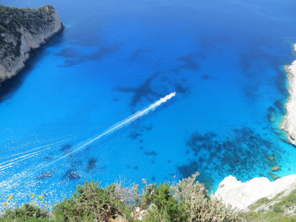 また、ビーチの名前「ナヴァイオ」はギリシャ語で「船」を意味します。これは、ビーチに打ち上げられた船の残骸があることから名付けられました。その船の残骸は、かつて密輸船が嵐に遭い座礁した名残で、今ではその姿もビーチの風景の一部となっています。ビーチでのんびり過ごすもよし、船の残骸を見に行くもよし、訪れる人それぞれが楽しめる要素が満載のビーチです。