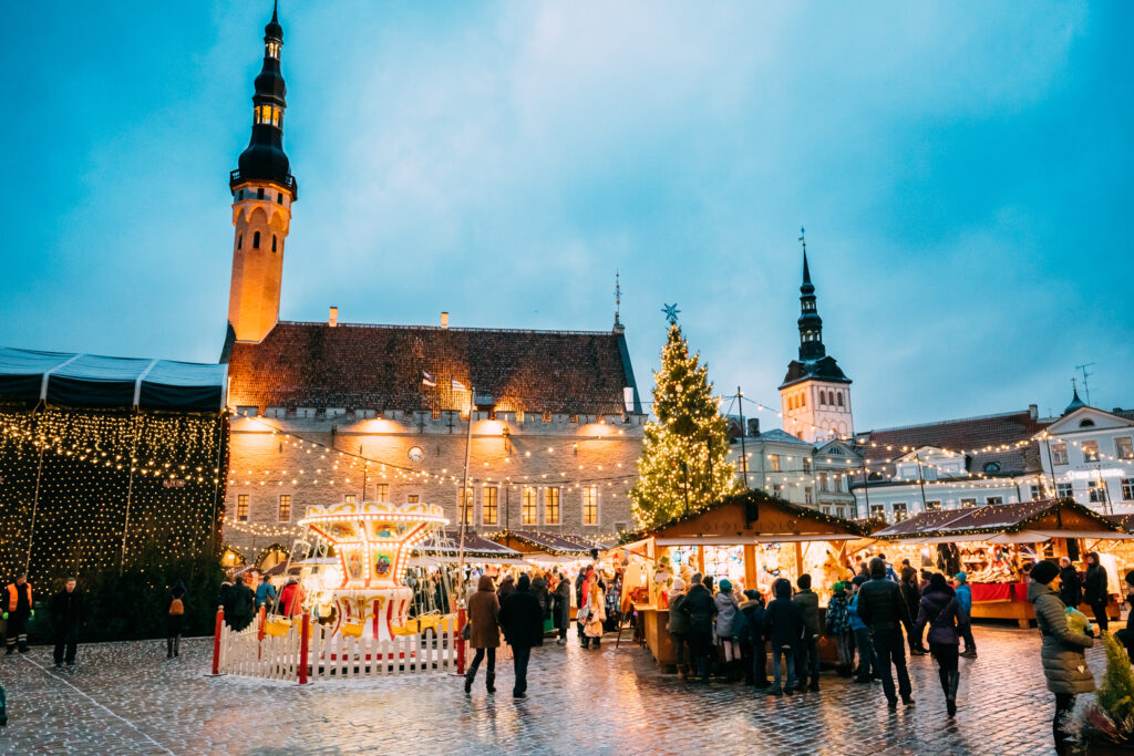 エストニアの冬期の観光には、タリンの街歩きがおすすめ。タリンにある「ラエコヤ広場」では、クリスマスツリーの周りに屋台が立ち並び、クリスマスマーケットが開催されます。さらに「展望台」で美しい夜景を楽しんだり、街のレストランでディナーを楽しんだり、大人から子供まで楽しめるスポットが盛りだくさんです。