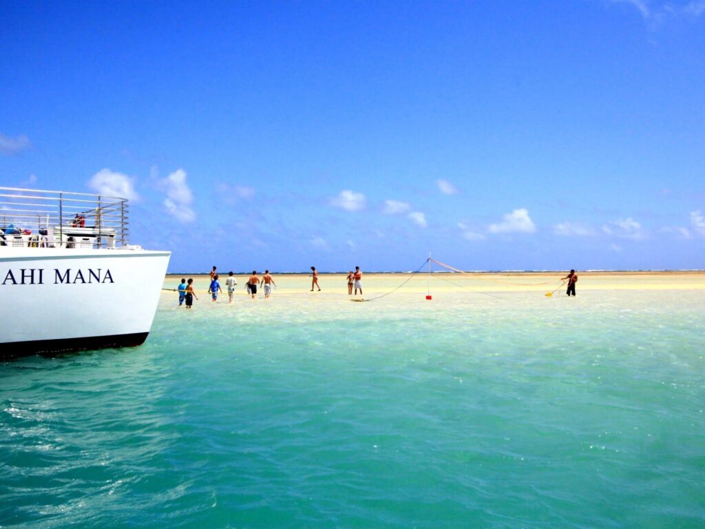 一度は行ってみたいリゾート地、ハワイのオアフ島!そんなオアフ島で必ず訪れたいのが、海の真ん中に広がる浅瀬が神秘的なサンドバーです。干潮時に浅瀬に現れる白い砂浜で、抜群の透明感と淡いブルーのコントラストはまさに天国のよう。フラダンスの聖地でもあり、サンドバーで先住民がフラダンスを神様に捧げたともいわれています。