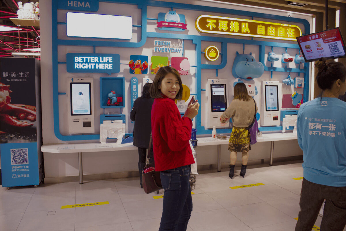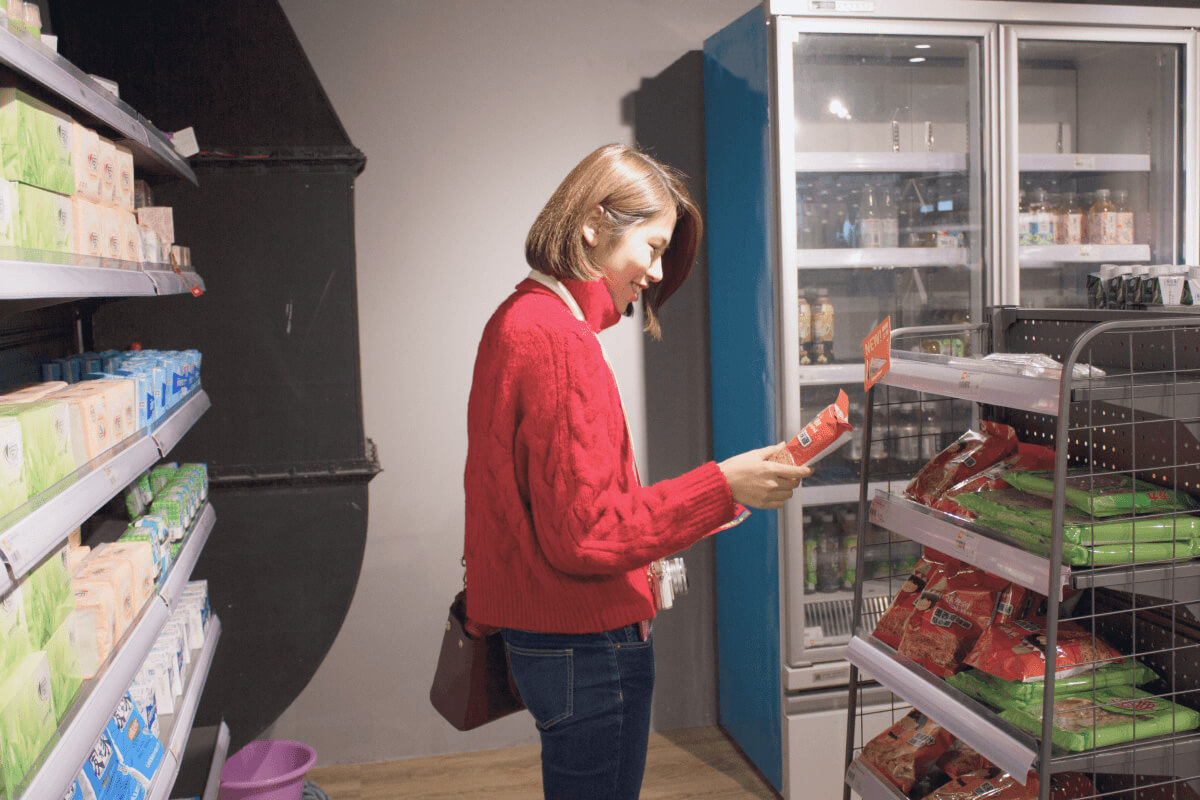 商品を選んだら、無人レジにスマホをかざして簡単決済。カバさんマークでおなじみ「盒馬鮮生(ホーマーシエンシュヨン)」で、最先端キャッシュレスショッピングを体験してみましょう!ちょっとしたお土産もここで調達♪