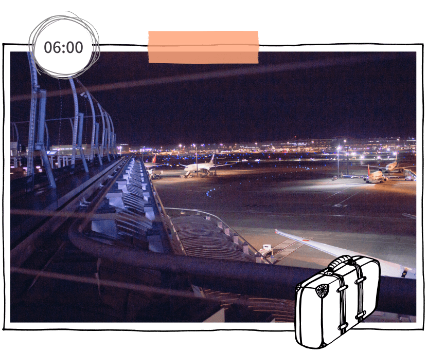 深夜でも楽しい遊び心いっぱいの羽田空港!レトロな江戸小路や旅情を誘う展望デッキなど、思い思いに楽しんで。24時間営業のカフェもあるので、小腹が空いても大丈夫。