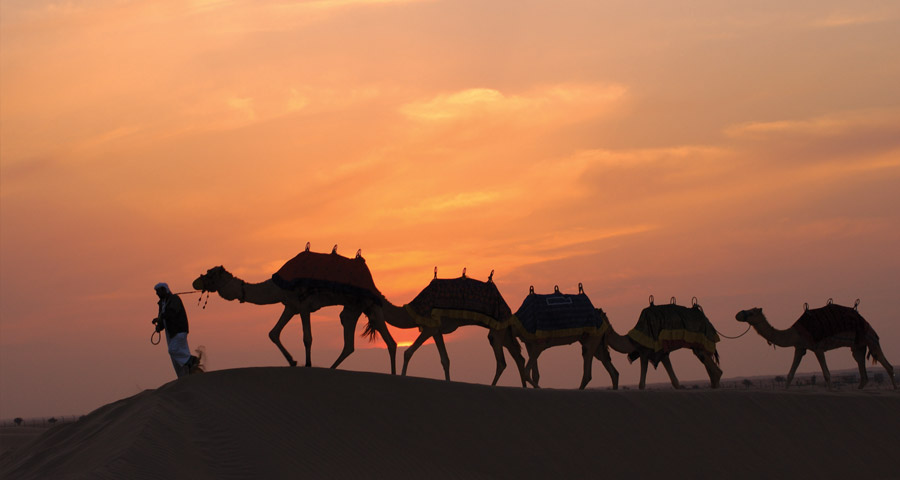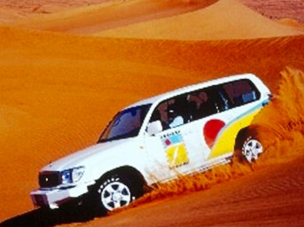 ドバイのビーチやショッピングエリアから車で45分ほど離れると、雄大な砂漠が広がり、遊牧民の生活など、アラビアンナイトの世界を垣間見ることができます。「サンセットサファリ」は、4WDのスリリングな砂丘ドライブに加え、砂漠に沈む夕陽を眺めながらの夕食やベリーダンスの鑑賞などを楽しめます。