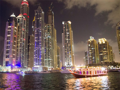 マリーナエリアの夜景と過ごす ダウ船ディナークルーズ<往復ホテル送迎付/ドバイ発>