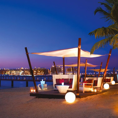 アラビアンナイトの魅力漂うロイヤル・ミラージュ・ホテル内のJetty Lounge(ジェティ・ラウンジ)は、海辺にある上品なBARです。洗練された空間でおつまみなどの軽いお食事とワインなどの飲み物をいただくことができます。日中のビーチはもちろん、夕景や夜景も楽しめる素敵なBARです。