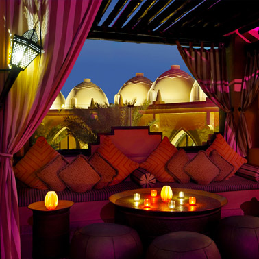 ロイヤル・ミラージュ・ホテルの最上階に「ルーフトップ・バー」はあります。ホテルの屋上にあり、砂漠に沈む壮大な夕陽を眺める最高のスポットです。スポーツの生中継を楽しめる円形バーがラウンジ内にあり、スケジュールによっては生演奏の音楽を楽しむことが出来ます。星空の下でとびきりロマンチックなアラビアンナイトの世界を満喫することができます。