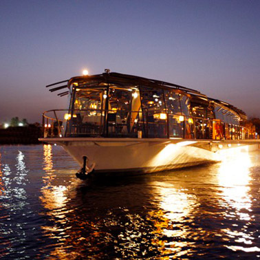 バトゥー・ドバイは、ドバイの夜景を楽しみながら本格的なフランス料理を味わうことができるラグジュアリー・ディナークルーズです。全面ガラス張りの船でドバイ・クリークをクルージングしながら、近代的な超高層ビルの夜景から歴史的建造物の残る旧市街の夜景まで、新旧ドバイの夜景を楽しむことが出来ます。