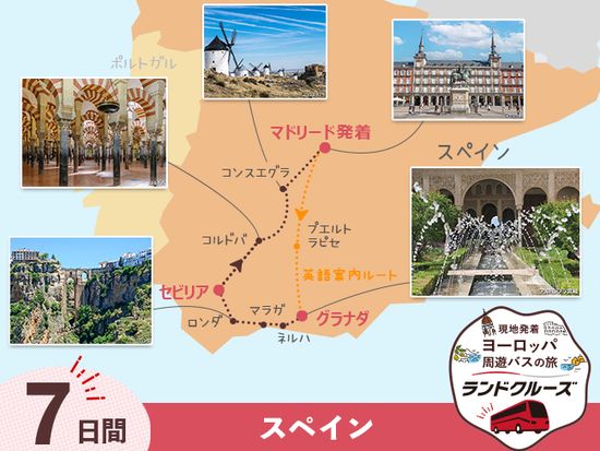 マドリード発着 アンダルシア地方周遊ツアー マドリード+グラナダ+セビリア+コルドバ観光<6泊7日/日曜発/1名催行/日本語>