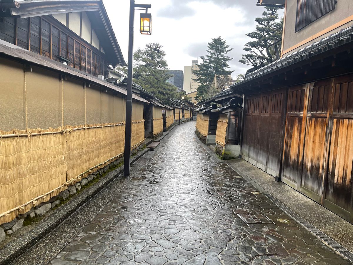 Despite the rain and light snow, he provided an umbrella and took us around Higashi Chaya District, Oyama Shrine, the Samurai House, Kanazawa Castle Park, and Kenrokuen in three hours, sharing the history and origins of Kanazawa with us.