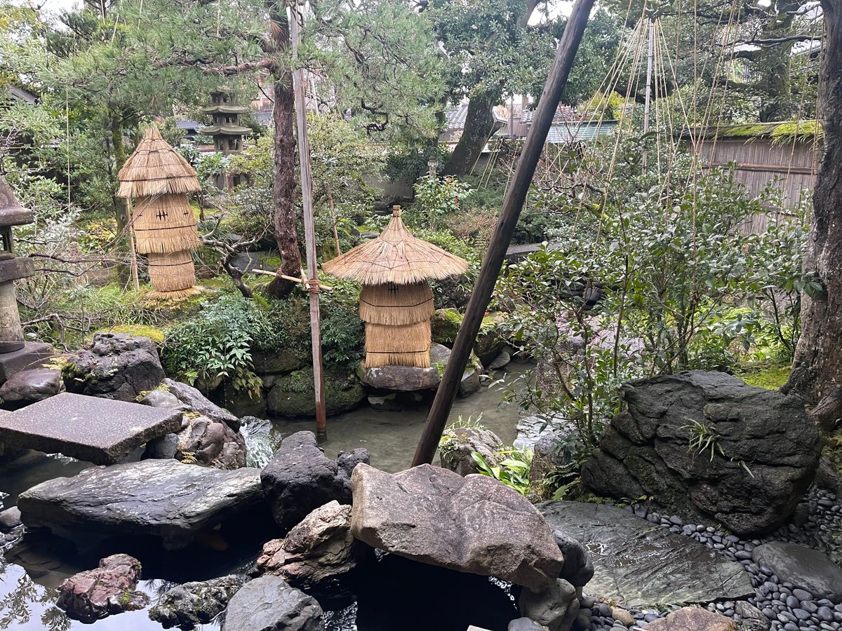 雨や小雪が降るなか傘を用意して頂き、ひがし茶屋街→尾山神社→武家屋敷→金沢城公園→兼六園を3時間かけて一緒にまわって頂き、金沢の歴史や由来などを教えて頂きました。