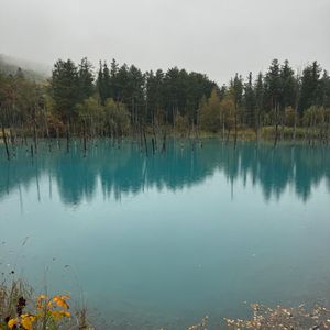 The weather was cloudy, and it started to rain in the latter half. The Blue Pond had a beautiful blue color, but I would have liked to see it in sunny weather as well.