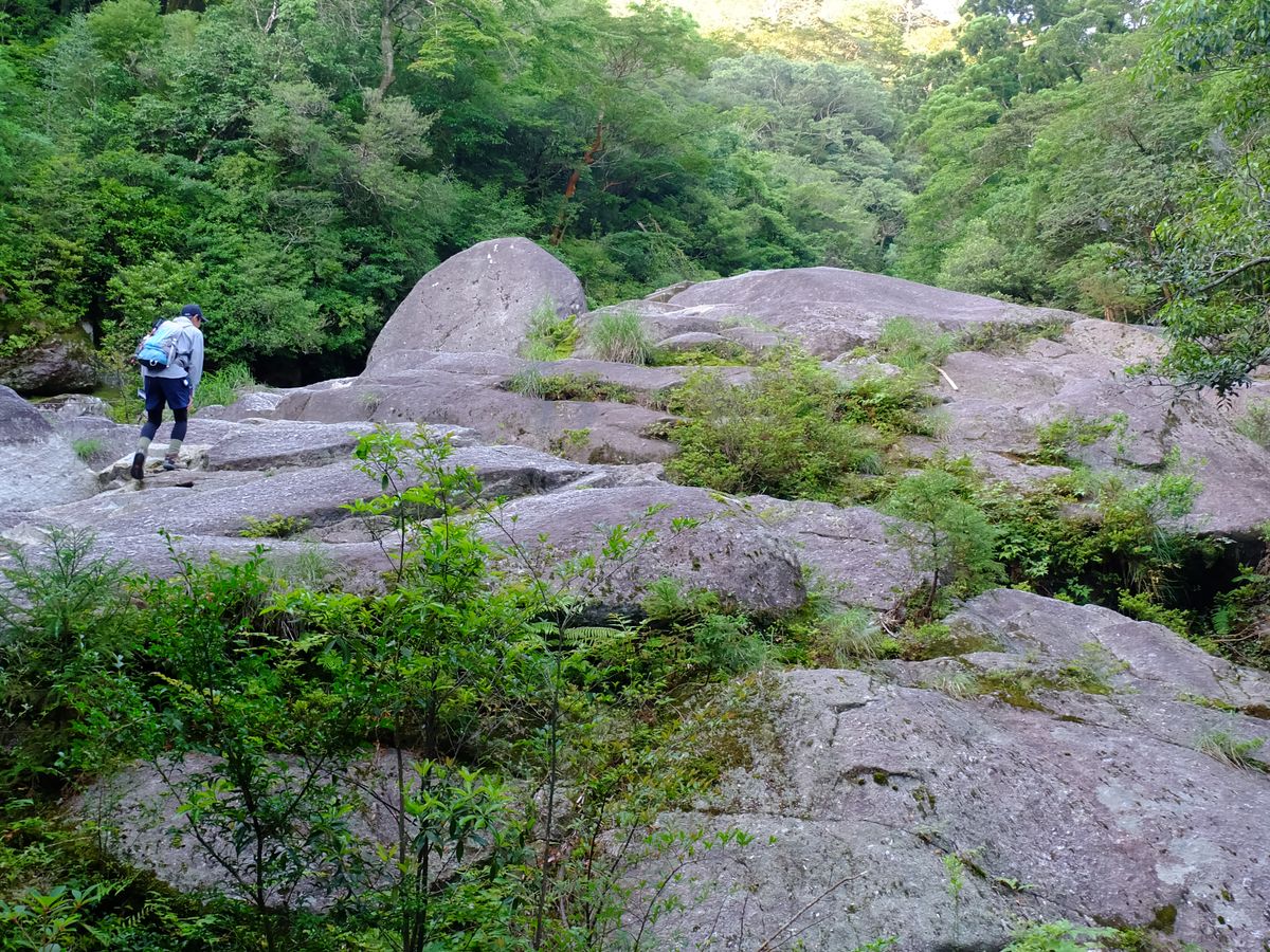 The guide was dressed lightly in a T-shirt and shorts, but I bumped my legs against rocks quite a bit, so I think wearing long pants or tights would have been better. Yakushima is full of rocks, so it can be quite painful. Since I was in the mountains, I probably didn't need a hat. Just wearing a hat made me feel quite hot, and I ended up taking it off at the end.
