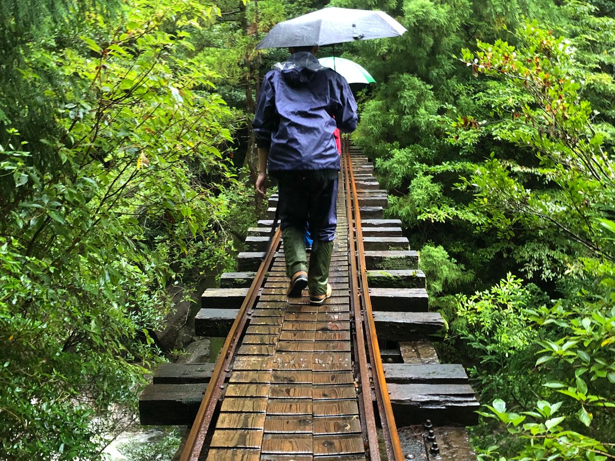 I participated with two friends. The weather forecast was wrong, and it poured rain from the morning without stopping, so we couldn't go to Taiko Rock due to safety concerns, and I have almost no photos from Shiratani Unsuikyo. However, I don't think I'll ever walk on such a dark, rainy mountain path again, so it was a good experience.