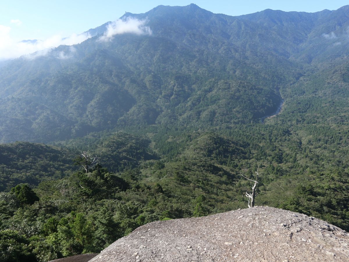 My stay this time was only for one day. I didn't have enough time to reach Jomon Sugi, so I enjoyed hiking to Shiratani Unsuikyo (Taiko Rock). The weather was clear with not a single cloud in the sky at the summit. It was unusually good weather for Yakushima, but it was fantastic.