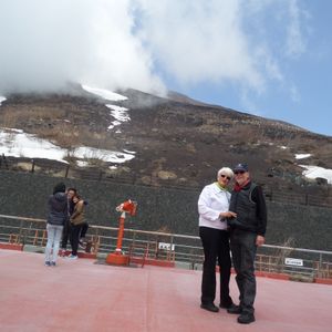 We were picked up at our hotel by our guide, Hashi and driven to where we boarded our bus for the day. Our first view of Mt Fuji was from the bus, and it was magical, with rivers of snow cascading from the the peak. We were driven to the 5th station, however, by the time we arrived, the peak was obstructed by cloud. From here we proceeded to a lovely hotel where we had a rather strange lunch, cold french fries, hot chicken and lovely crumbed prawn with a very watery miso soup. Following this we were taken to a gondola ride to a thermal region behind Lake Ashi, where the bus met us and took us to Lake Ashi for a cruise in a beautifully designed and decorated replica of a French Galleon. Hashi then explained how we would catch the Bullet Train back to Tokyo, and we were driven to the railway station. Several trains sped through the station whilst we were waiting, which was an experience. Our train ride to Tokyo was very comfortable and an experience not to be missed. We thoroughly enjoyed our day, and would recommend it to anyone traveling to Tokyo.