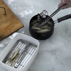 I had a great time fishing for wakasagi for the first time, and even though the fish were small, it was enjoyable. It was still a bit cold inside the tent.