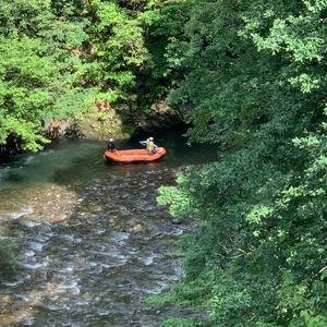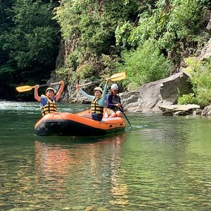 Although the meeting place was a bit difficult to find, I received clear instructions when I called. The weather was nice, the water temperature was just right, and I was able to enjoy the beautiful scenery and the flow of the river. The river was clear, and I could see schools of fish. The staff also provided information about nearby cafes and delicious bakeries. During the rafting, they took photos at various points, but I was informed that all the photos would cost 2,000 yen. I wish they offered a cheaper option for fewer photos.