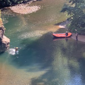 On the day of the activity, I arrived at the location 10 minutes early, but there was no instructor present, and I almost ended up playing park golf there. However, shortly after, the instructor arrived, and we set off. First, we jumped from the cliff into the rubber boat. I got scared thinking about people falling from that cliff, but it turned out to be a gentle slope into the river. At first, the water was very cold, but I gradually got used to it, and by the end, I was able to jump from about 8 meters, which felt amazing. The instructor's dog was especially cute and friendly. Spring is definitely the best time for this activity.