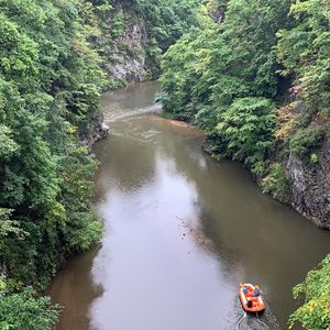 当日、10分前に現地に着きましたが、インストラクターの方がおらず、危うくそこのパークゴルフをしてしまいそうになりました。しかし、すこし後にインストラクターの方が来てくださり、いざ出発。まずはゴムボートを崖からぼーん。人もこの崖から落ちるのかと思うと怖くなりましたが、そんなことはなくなだらかなところから川へ。はじめはとても冷たかったが、徐々に慣れていき、最後には8メートルほどのところがジャンプもできて、とても気持ち良かったです。特にインストラクターの方が飼ってる犬がとても可愛く、人懐こかったです。春どきが一番アツいしいです。