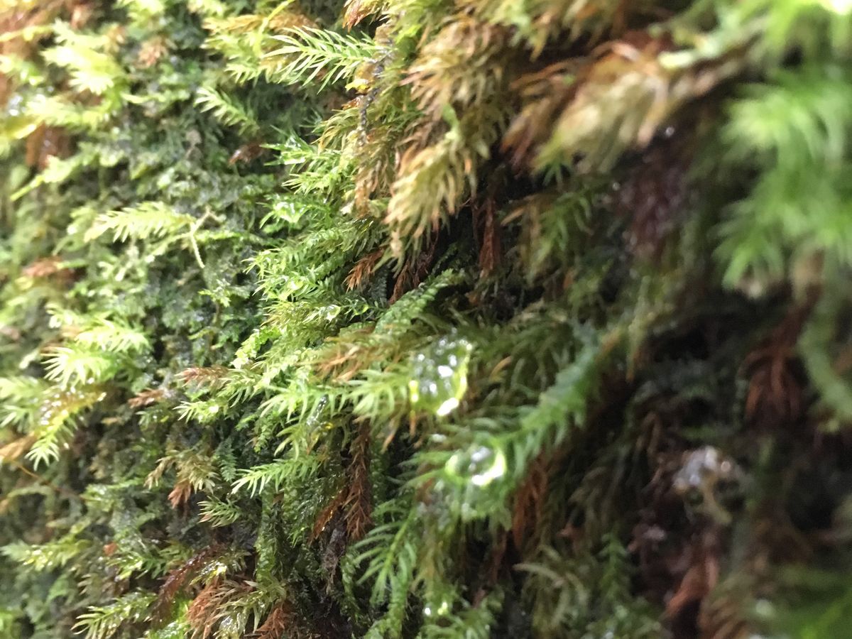 帰路の奉行杉コースも苔と沢の景色の素晴らしい森でした。お二人もただ歩くだけではなく、いろんなものを見つけて写真を撮ったり、