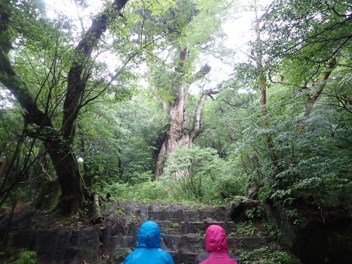 This time it was a challenge for the whole family! As the rain continued and a typhoon approached, our veteran guide said, "The rain-soaked Jomon Sugi and the snow-covered Jomon Sugi are equally mystical, so you are very lucky." With that remark, our trekking began. We walked endlessly along the trolley path, and once we finally finished it, the real mountain trail started!