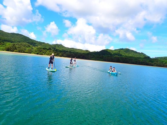 I had a great time with stand-up paddleboarding at Kabira Bay for the first time. It's been selected as one of Japan's 100 scenic views, and it was very beautiful with the ocean looking so clear.