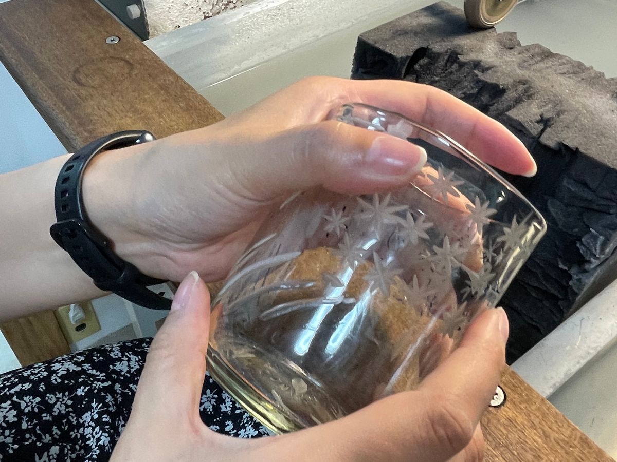 I had a great time learning in a homely atmosphere. I was able to choose a design I wanted to create from various samples and design it in my own way while using them as references. It was really fun! I understood how cut glass is made, and I became aware of the incredible craftsmanship of the products in the store. That made me very happy as well. Lastly, I appreciated being able to take beautiful photos at the end! Thank you!!!