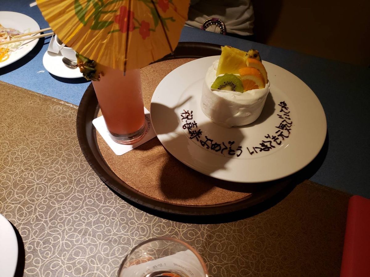 For my father's 77th birthday celebration, I gifted him a trip to Okinawa and arranged for him to participate in a sunset cruise. I wanted to surprise not only my father but also my mother, so I asked the staff in advance to help with a cake. The surprise was a great success, and my mother was so happy that she ended up in tears. She said it became the best memory of this trip. Thank you to all the staff for your warm hospitality.