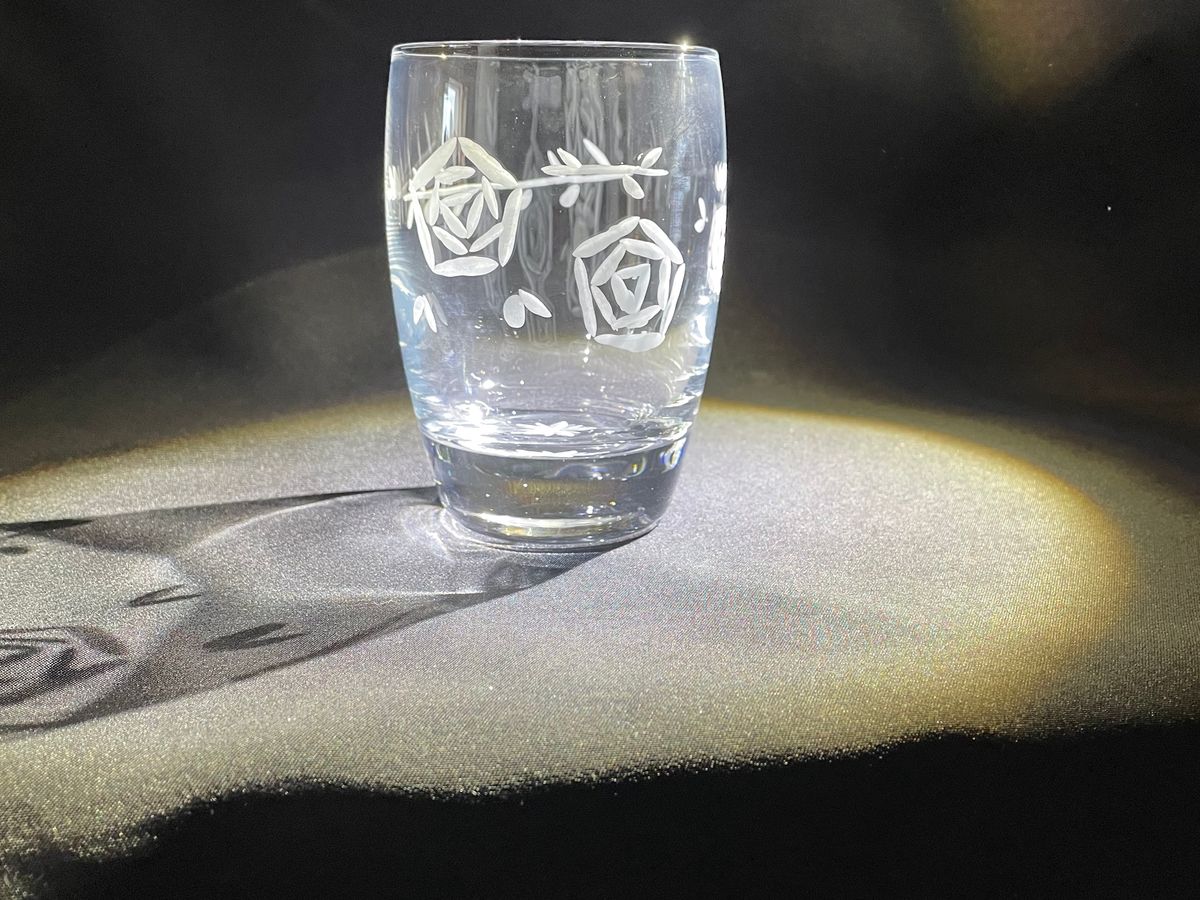 First, I chose a glass and practiced the carving technique. After that, I selected a beginner-friendly design, sketched it out, and carved the glass. I couldn't carve as well as the sample, but I think I did quite well. Even if I made mistakes, I received advice, which allowed me to come up with my own solutions. Those who struggled with carving difficult lines had the staff help them with corrections.