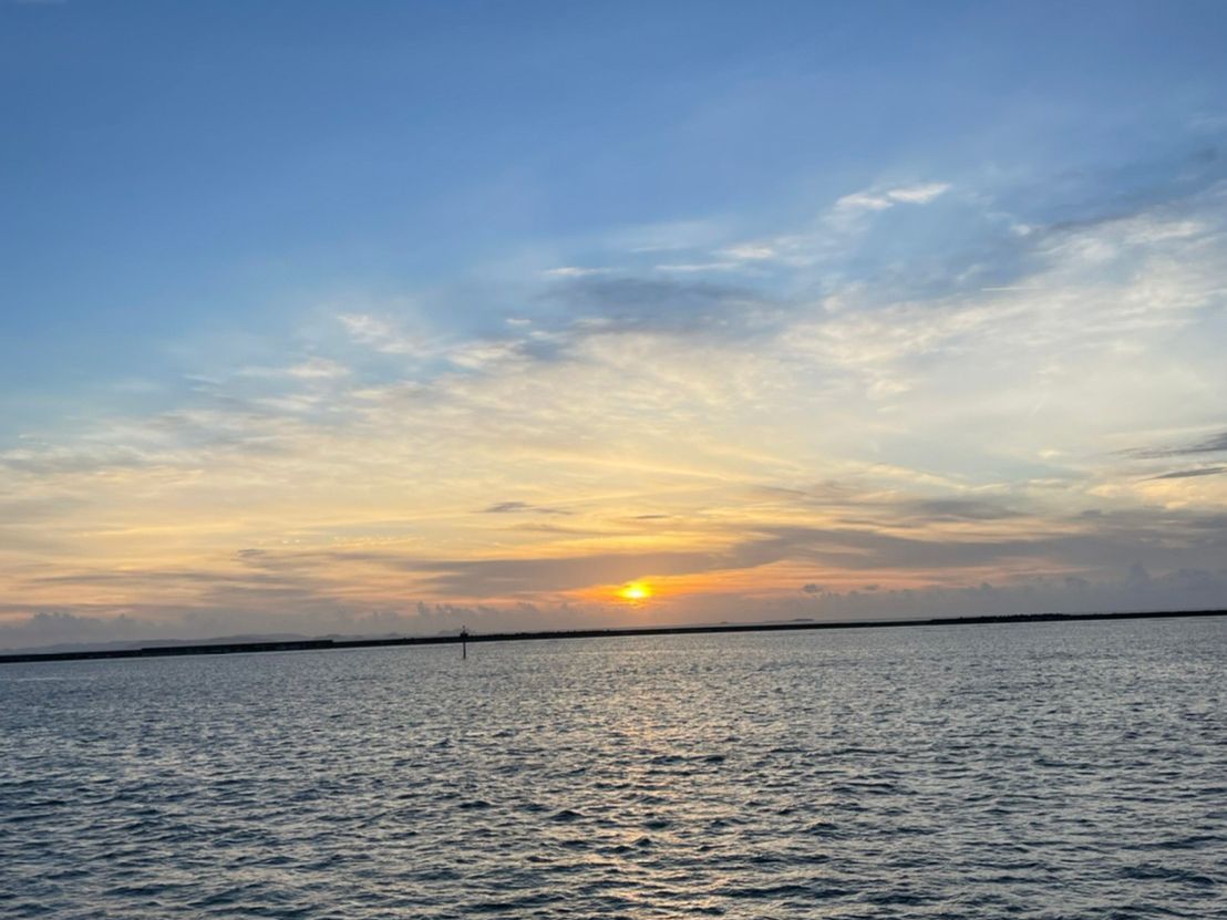 I enjoyed a delicious steak course on the sunset dinner cruise. In addition to the course, there was a buffet with salads and rice, so I was full. The weather was great, but clouds appeared just before the sunset. The photo is of the sunset taken 20 minutes before it set!