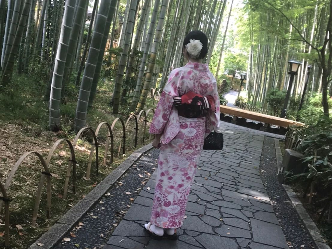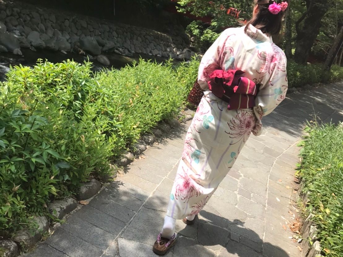 過日は当店をご利用頂きまして誠にありがとうございました。浴衣はお祭りや花火の時にしか着ない方が大半かと思いますが、修善寺はお洒落に着て似合う街です。後ろ姿のお写真も素敵でした。着物で紅葉を愛でながら竹林を歩くのも素敵です。またのお越しをお待ちしております。