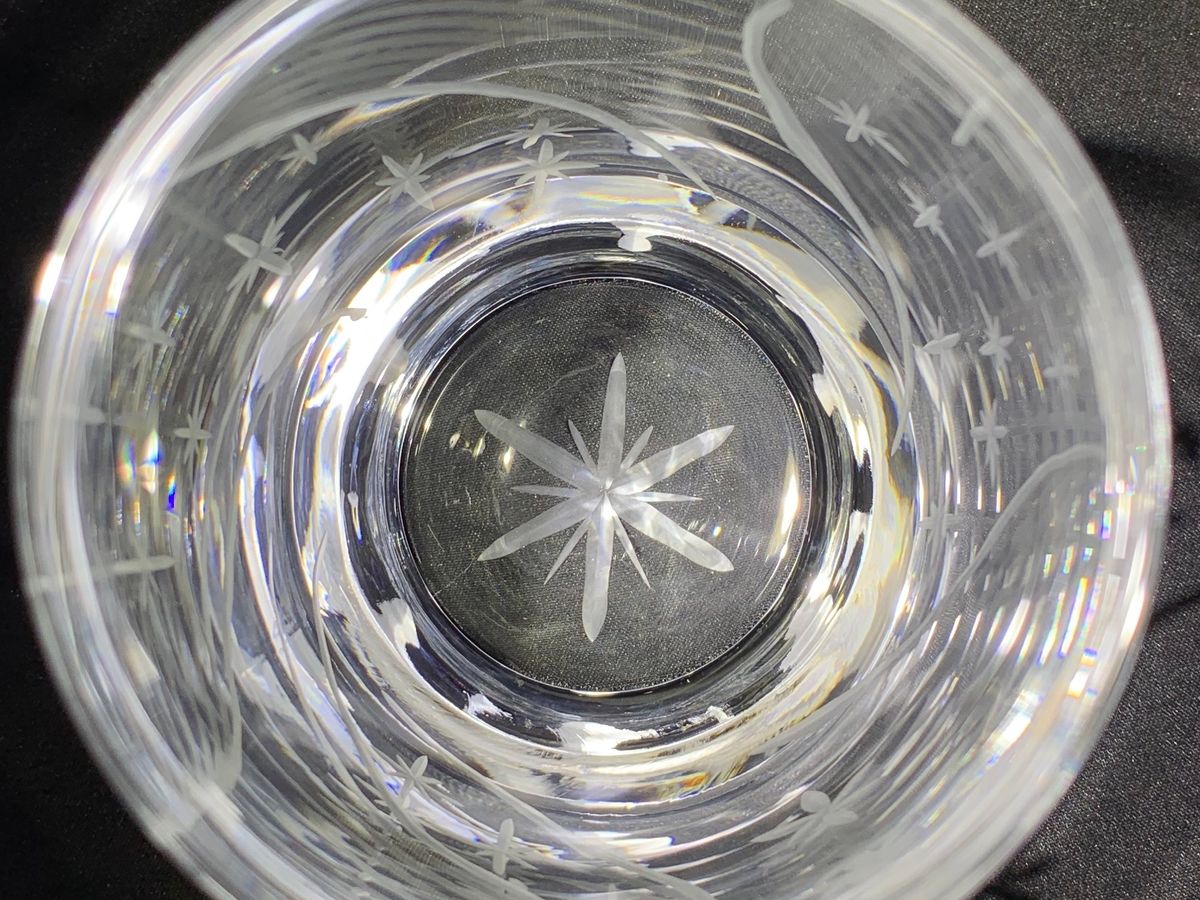 少人数で説明も丁寧でした。初めに星を3つ掘る練習の時間があって、好きなグラスで本番です。デザインは机上のサンプルから好きなデザインを選びます。なかなか見本のようにできませんが、大きな修正はスタッフの方がごまかしてくれました。