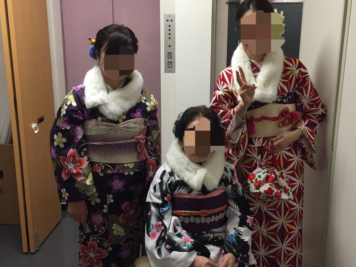 I hadn't told my grandmother where we were going, so when we arrived at the studio, she almost tried to run away, and I apologize for the trouble. However, the staff kindly helped her change while complimenting her, and she was able to change clothes safely.