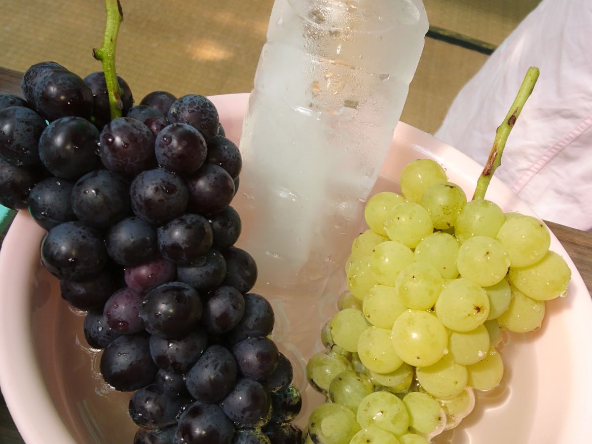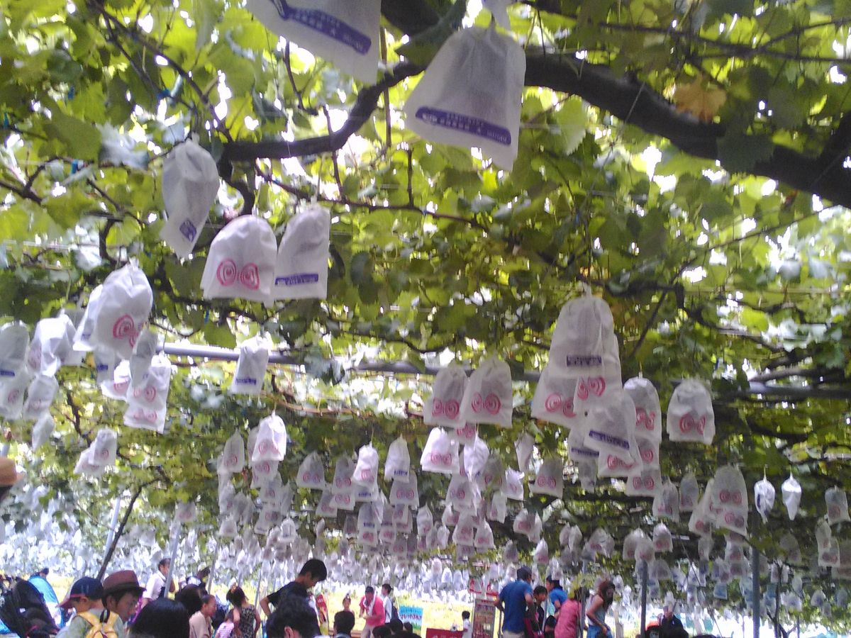 I went grape picking. The sight of beautifully delicious grapes hanging heavily from the vines was truly impressive, and many families were spreading out their picnic blankets underneath, creating a relaxing and comforting atmosphere that felt very much like a typical Japanese way to unwind. The grapes were magnificent, likely worth around 1000 yen at the supermarket, and they were incredibly sweet and tasty. I was determined to eat a lot, but they were so big that one bunch filled me up; however, I managed to eat three bunches.