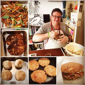 Sato was an excellent teacher assisting me in cooking some delicious rice burgers. The only problem was that we both didn't have room for all that we made :)