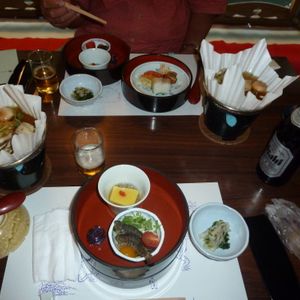 Arriving at sunset, you see the beauty of the hot spring resort with our tables overlooking the river and mountain forest. We ordered the snow course (full- larger Kayseki) dinner. Traditional hosts (who speak only a little English) took us to our low tables set with course 1, gift Japanese fans and menu's in English. Sake and beer is additional. We had 2 Maiko's that evening, each separately visited all the tables to take pictures. (they speak Japanese, but can answer a little of English questions) Food was fresh, delicious and so artistically presented course by course. The beautiful dance & musical entertainment was lovely in the intimate setting. Each group had their own tables and the room is not too large. Splurge and treat yourself to this special experience.