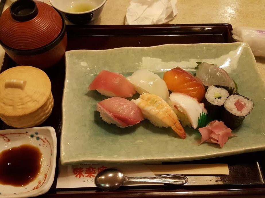 The food was tasty, but one slice of sashimi I had smelled bad.