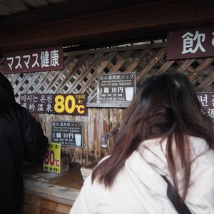 I enjoyed the unique scent of sulfur from the hot springs, savored onsen tamago (hot spring eggs), and drank hot spring water at about 80°C, fully enjoying my trip 😊