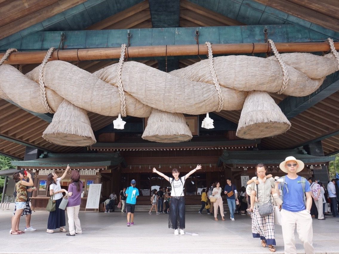 First, we visited Yaegaki Shrine. There was a simple pamphlet, and even though I came without any study or preparation, I was able to enjoy myself without any inconvenience. After that, we headed to the main attraction, Izumo Taisha. The weather was nice, and I was able to worship at the sacred Izumo Taisha.